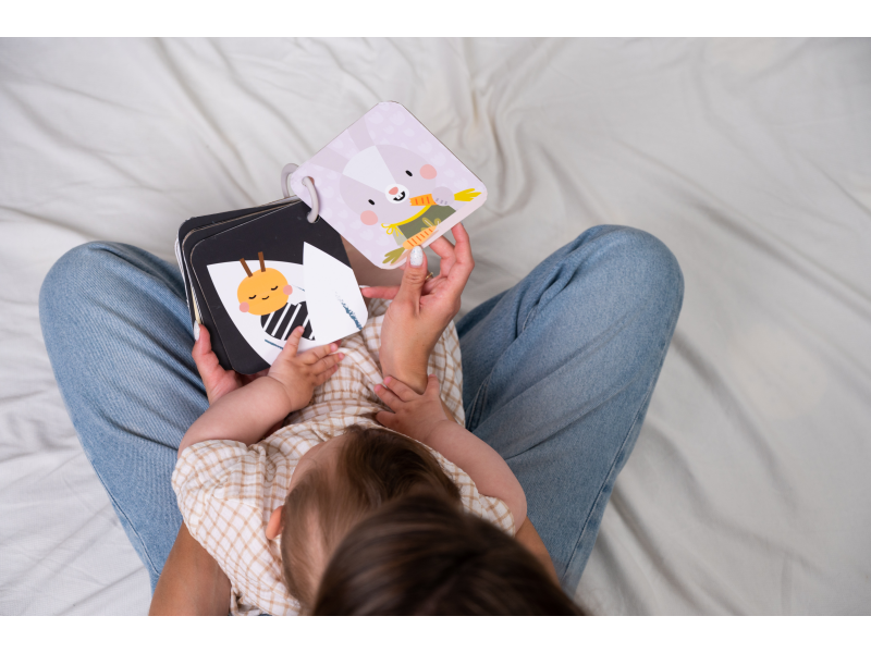 Ilustrované karty poskytují rodiči náměty na vymýšlení příběhů, které mohou dítěti vyprávět před spaním. Během dne karty s výraznými kontrastními obrázky využijete pro zabavení dítěte na hrací dece i v kočárku či autosedačce.