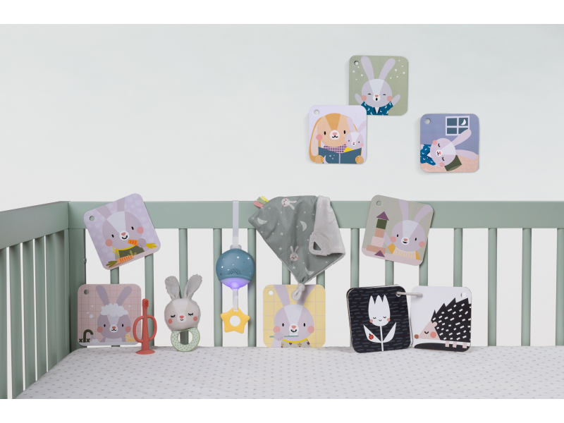 Sada obsahuje jemné noční světýlko hudbou, měkký silikonový kartáček na zoubky, muchláčka s kousátkem, kousátko králíčka a 7 oboustranných ilustrovaných karet s kroužkem pro spojování.