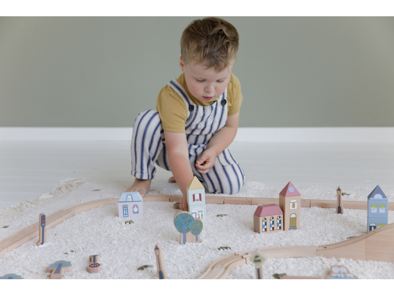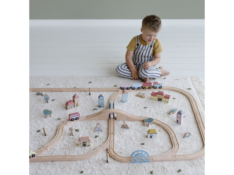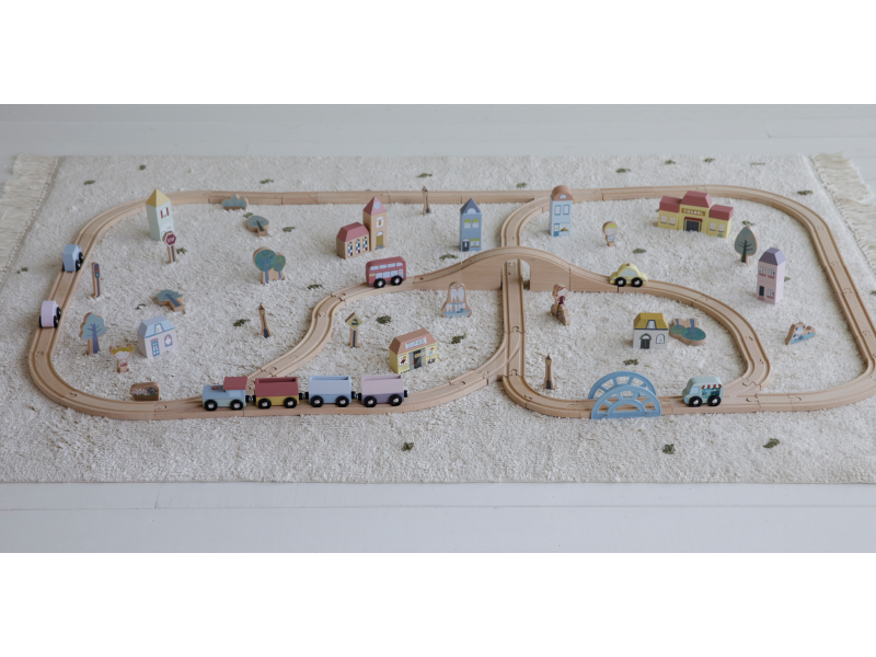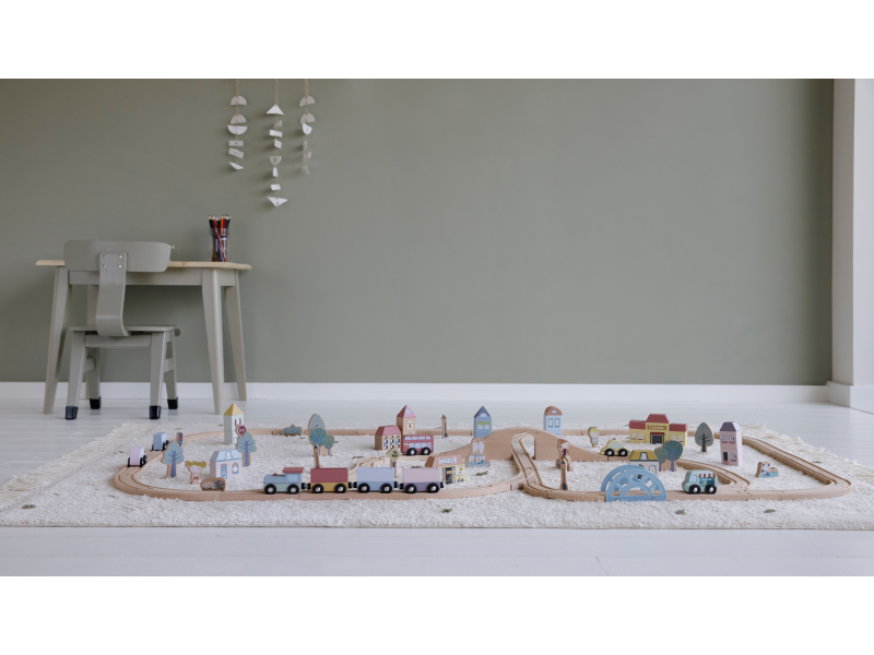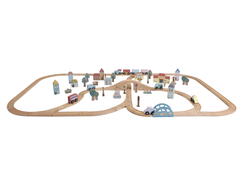Vydejte se s vaším dítětem na nekonečné dobrodružství s dřevěnou vláčkodráhou XL od Little Dutch. Naskočte na vlak, autobus nebo do auta a prozkoumejte město. Tato sada s více než 100 díly nabízí obrovskou variabilitu a můžete tak s vaším dítětem vymýšlet nové a nové kombinace. Každá dřevěná figurka má na obou stranách krásné ilustrace.