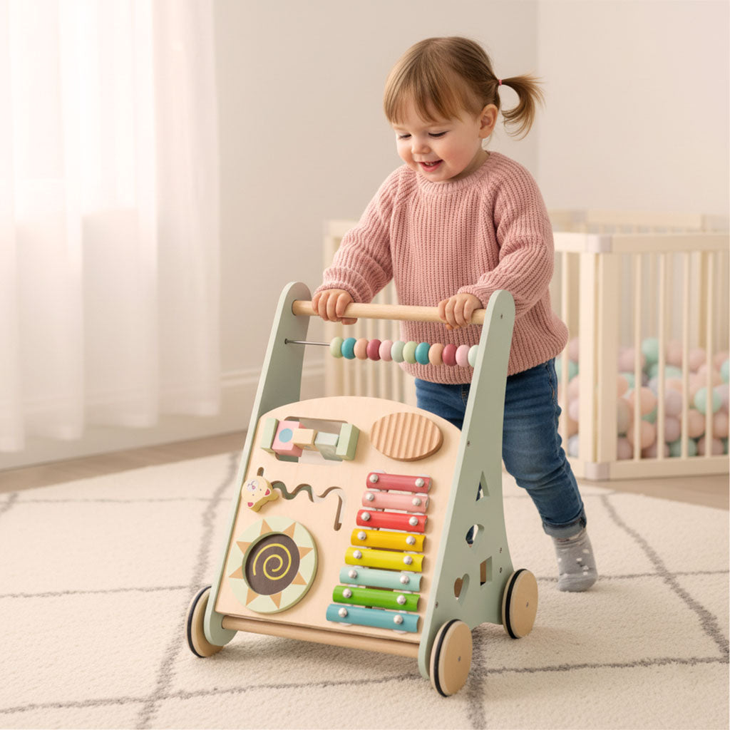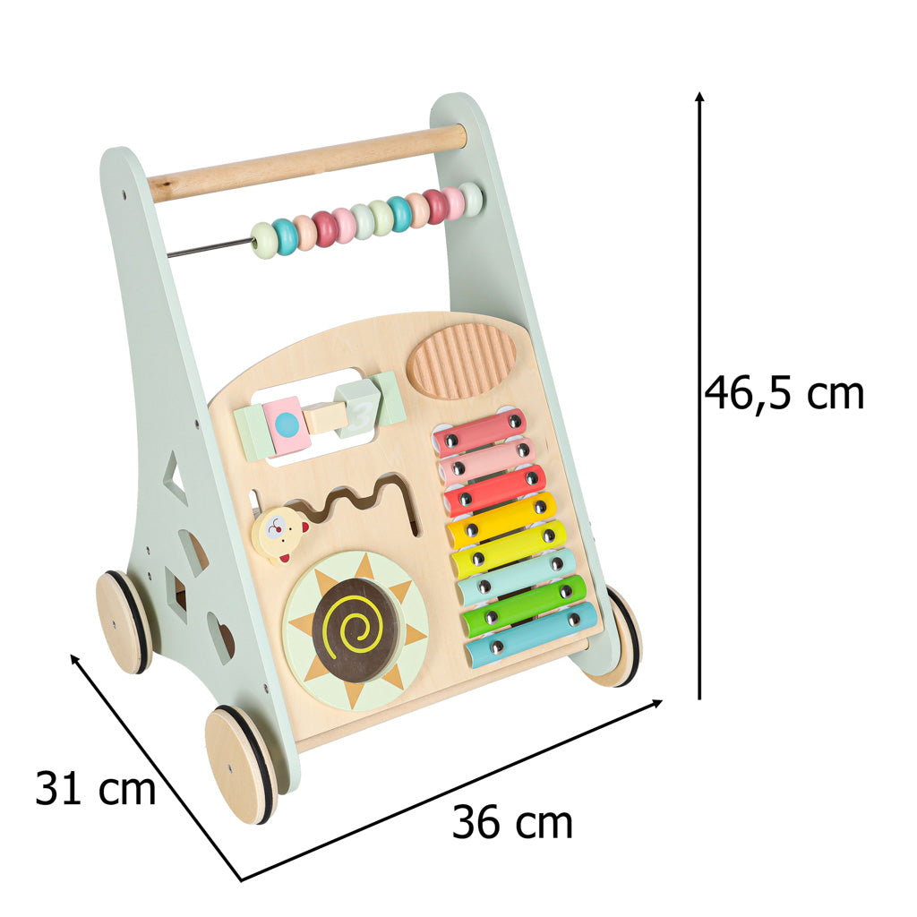 Toto multifunkční dřevěné chodítko je perfektním společníkem pro první kroky, objevování, hru i učení. Skvělý tip na dárek pro nejmenší děti!