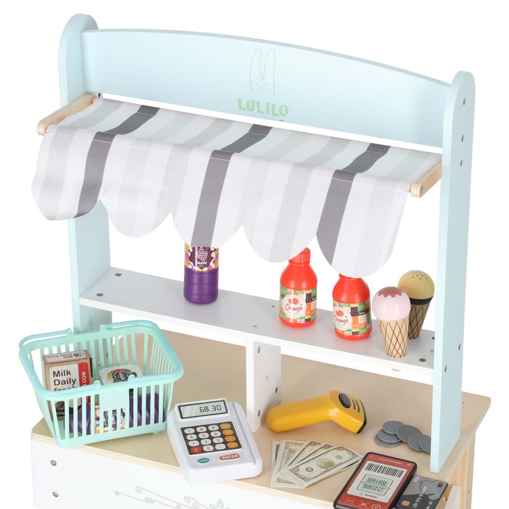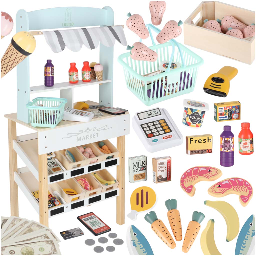 Dřevěný trh LULILO Melo – supermarket s pokladnou