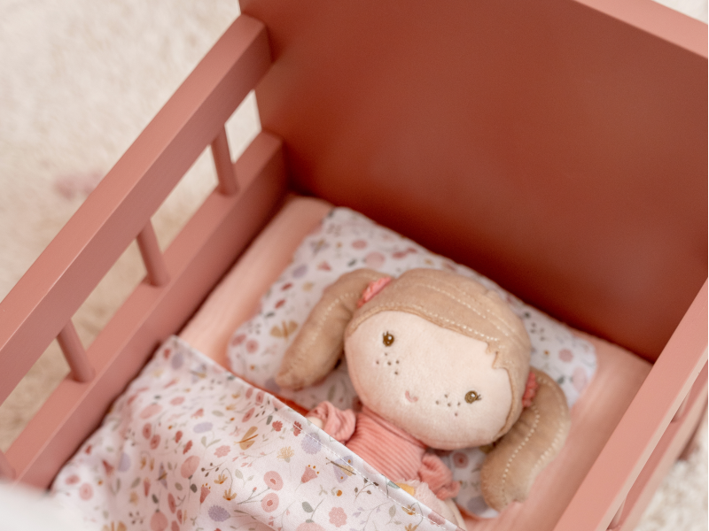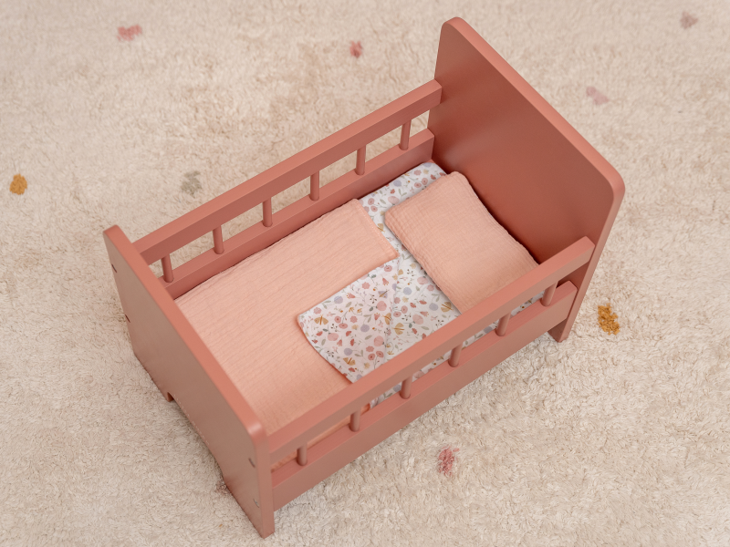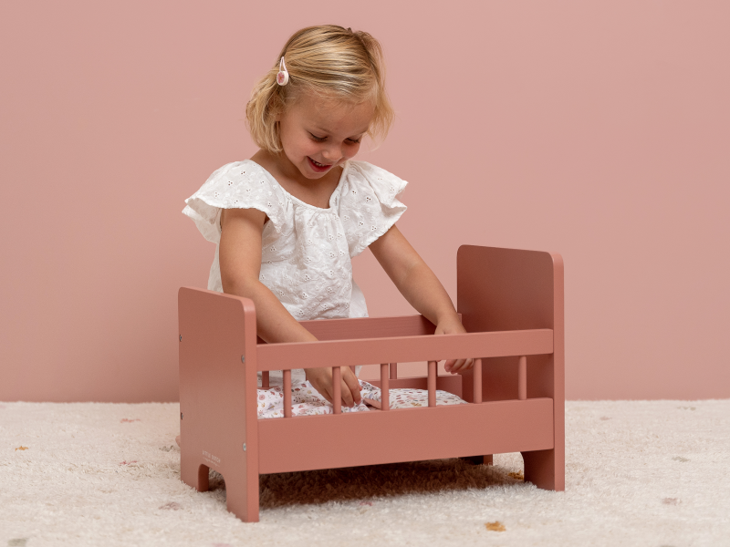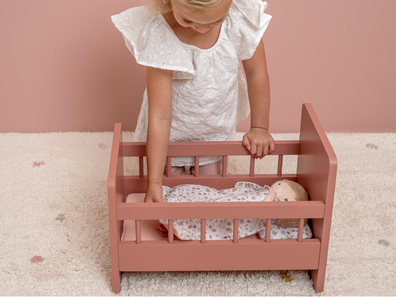 Roztomilá postýlka v krásném dřevěném provedení je vybavena peřinkou, polštářkem a matrací a vybízí tak k uložení oblíbené panenky či plyšáka vašeho dítěte. Děti milují napodobování svých rodičů a předstírají, že jsou mámou nebo tátou tím, že se starají o své panenky a plyšové hračky. Hraní rolí podporuje rozvoj jejich kreativity a představivosti.