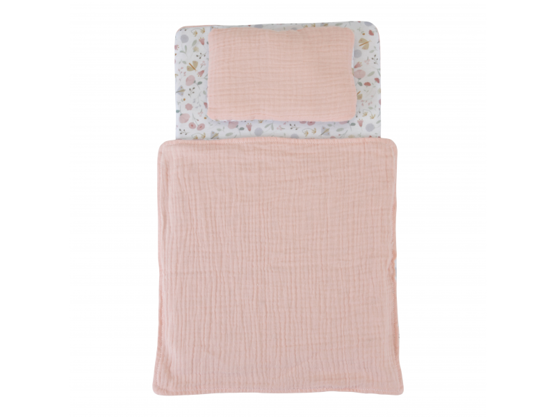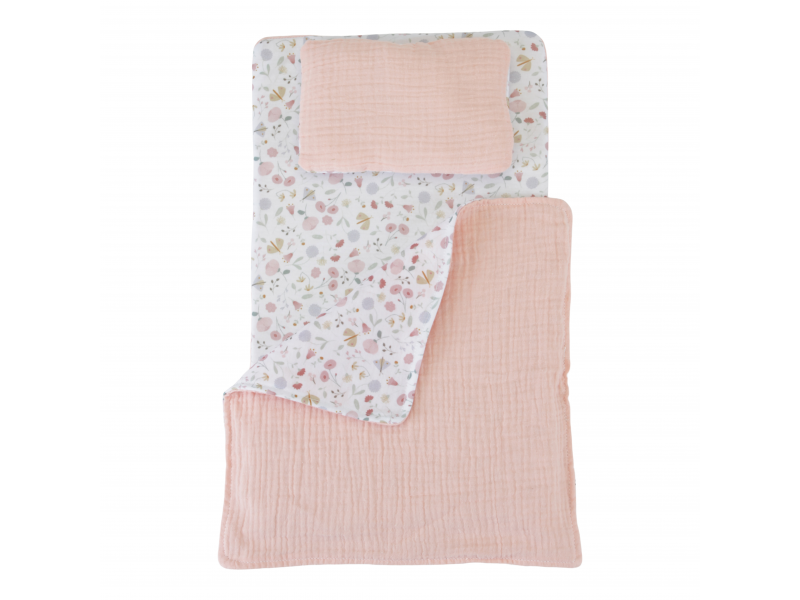 Peřinka a polštářek jsou součástí designové kolekce Little Dutch Květiny a motýli, ve které najdete dekorativní doplňky do dětského pokoje, ložní prádlo, dřevěné a plyšové hračky i jídelní doplňky pro dětské stolování.