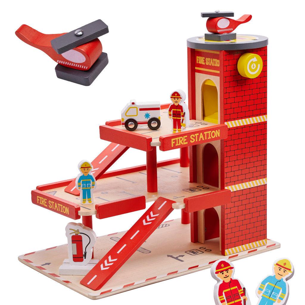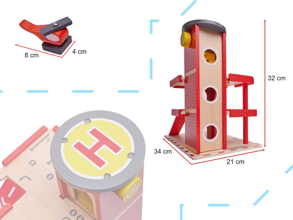 • 4 Úrovně zábavy: Přistávací plocha pro vrtulníky a tři patra určená k parkování hasičských vozů.