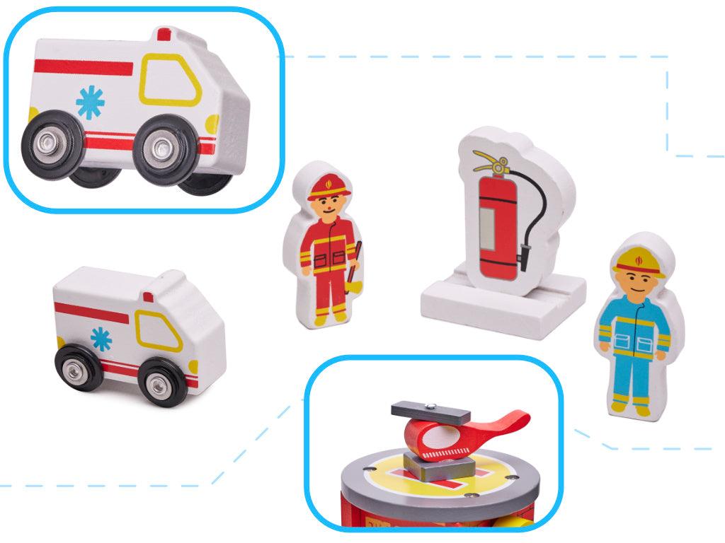 • Vhodné doplňky: V sadě najdete také hasičský přístroj a další doplňky pro realistické a zábavné hraní.