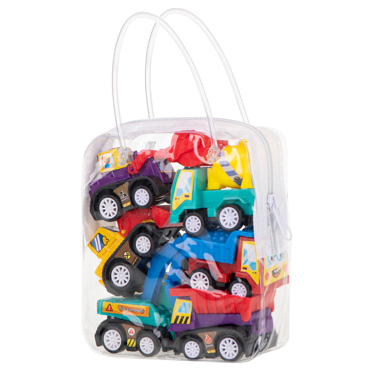 Zábavná sada šesti malých stavebních vozidel s mechanickým pohonem, navržená speciálně pro nejmenší děti. Autíčka se samy rozjedou po lehkém postrčení díky frikčnímu pohonu, což zaručuje spoustu radosti z pohybu bez potřeby baterií.