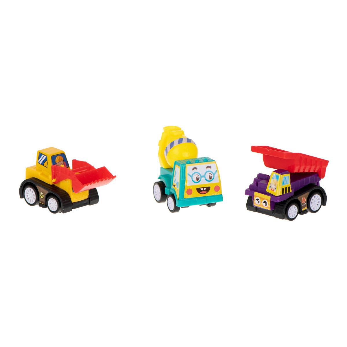 Každé autíčko má pohyblivý prvek (např. korbu, betonový buben nebo radlici), který zpestřuje hru a stimuluje dětskou fantazii. Barevné provedení a roztomilý design osloví každého malého milovníka stavebních strojů.