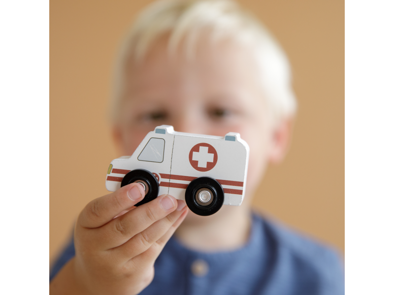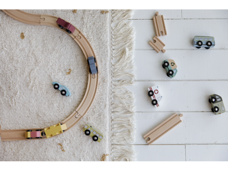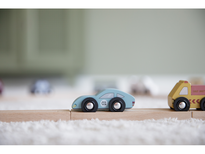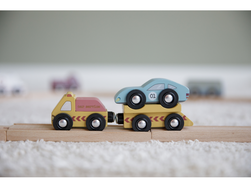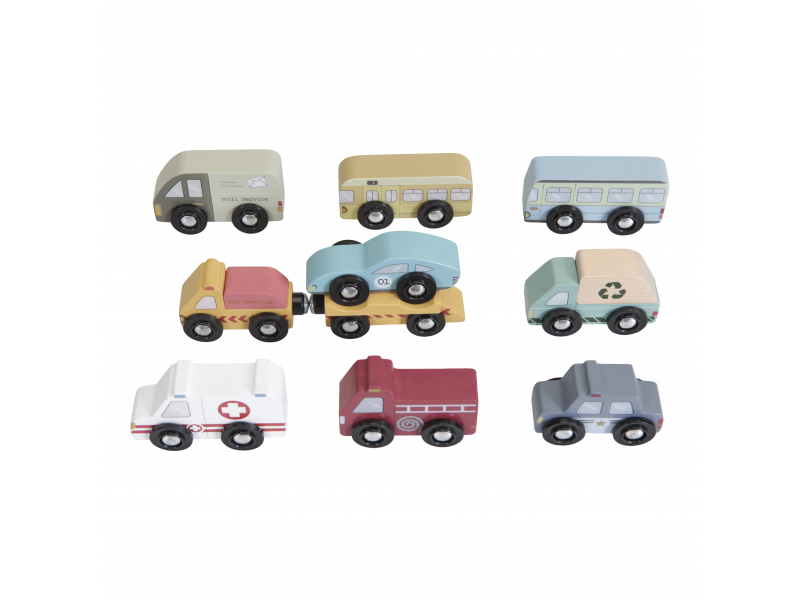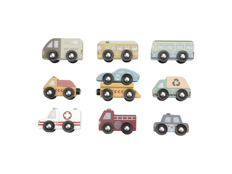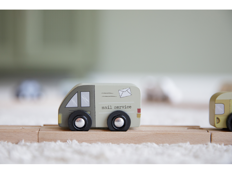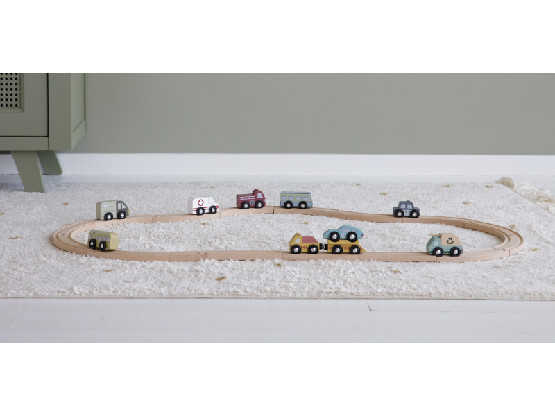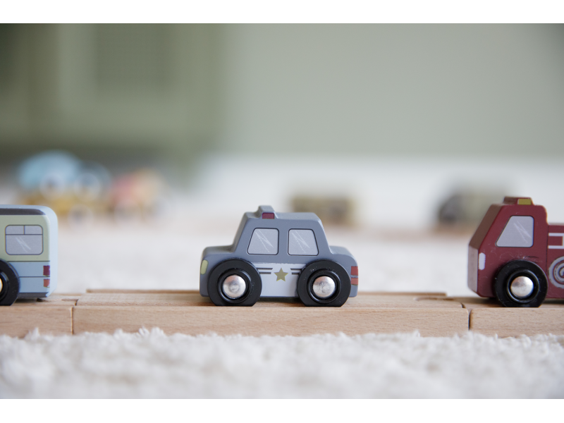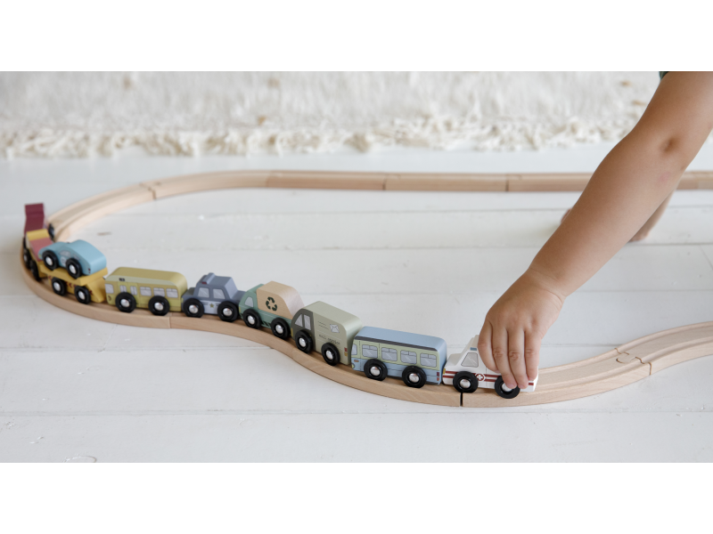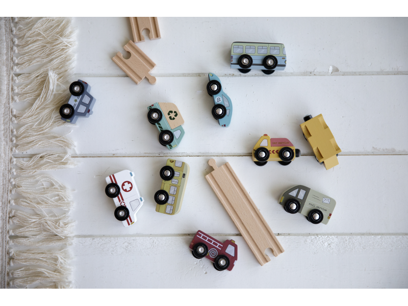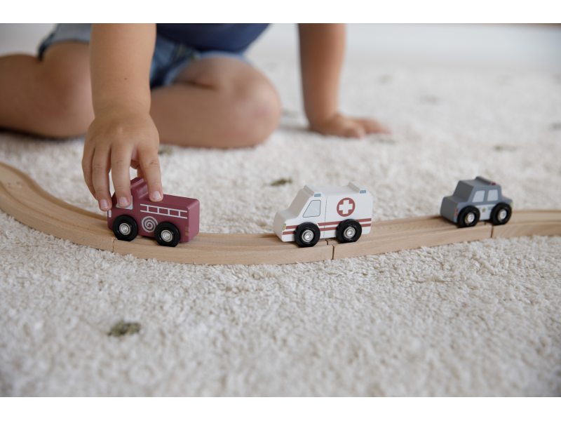 Dřevěné užitkové a záchranné vozy jsou oblíbeným doplňkem hodí k Little Dutch dřevěné vláčkodráze XXL. Vozidla jsou vhodná pro jízdu po kolejích a poskytují tak asistenci tam, kde jsou ve městě potřeba. Dřevěné kolejnice nejsou součástí setu.