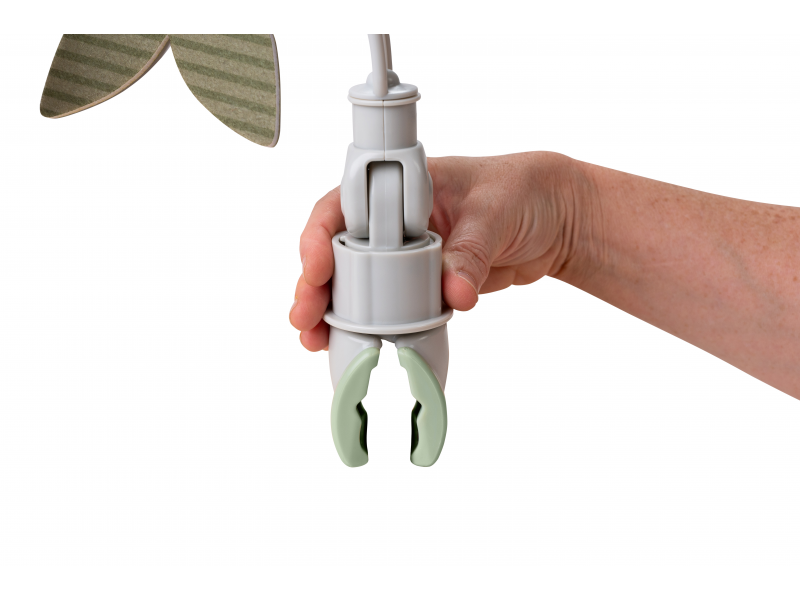 Měkkou a pružnou hrazdu připevníte s pomocí plastových klipsů k většině kočárků i autosedaček. Klouby umožňují nastavit sklon hrazdy dle potřeby.