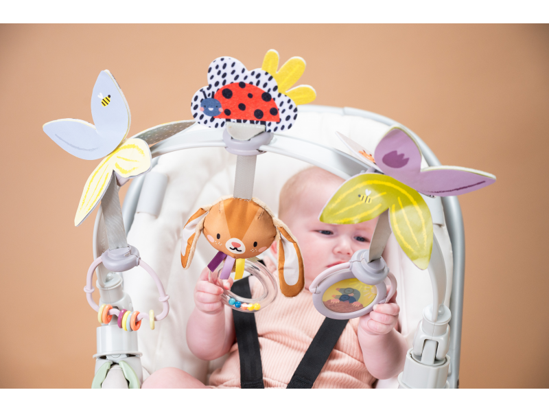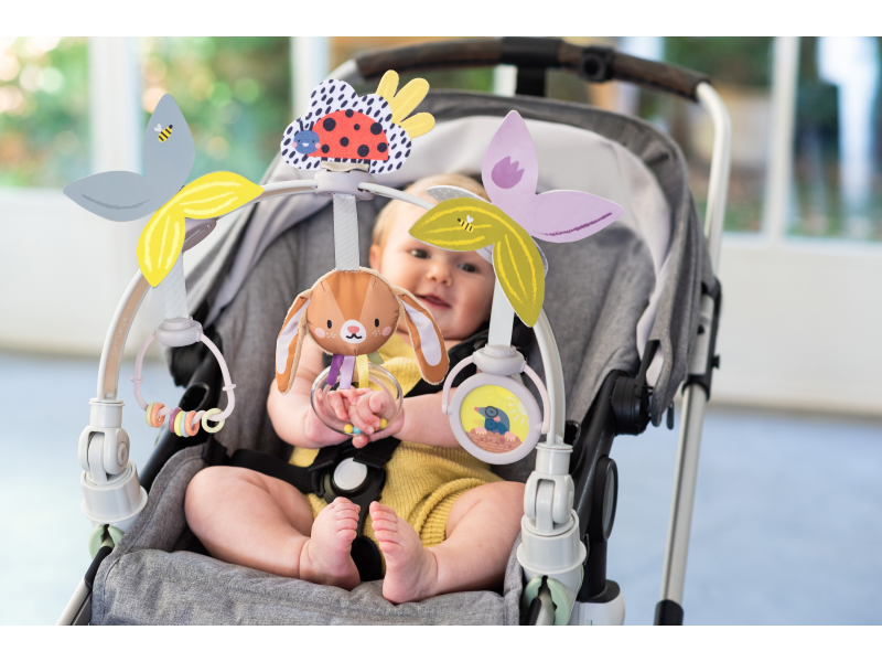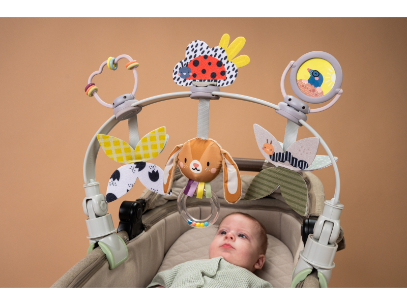 Hrazda je určena k připevnění na kočárek nebo autosedačku a zabaví vaše miminko na cestách.