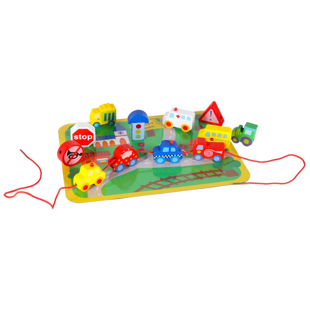Tato dřevěná vzdělávací hračka je skvělou volbou pro děti, které si rády hrají, tvoří a zároveň rozvíjejí důležité dovednosti. Ideální dárek pro malé milovníky aut a vláčků!