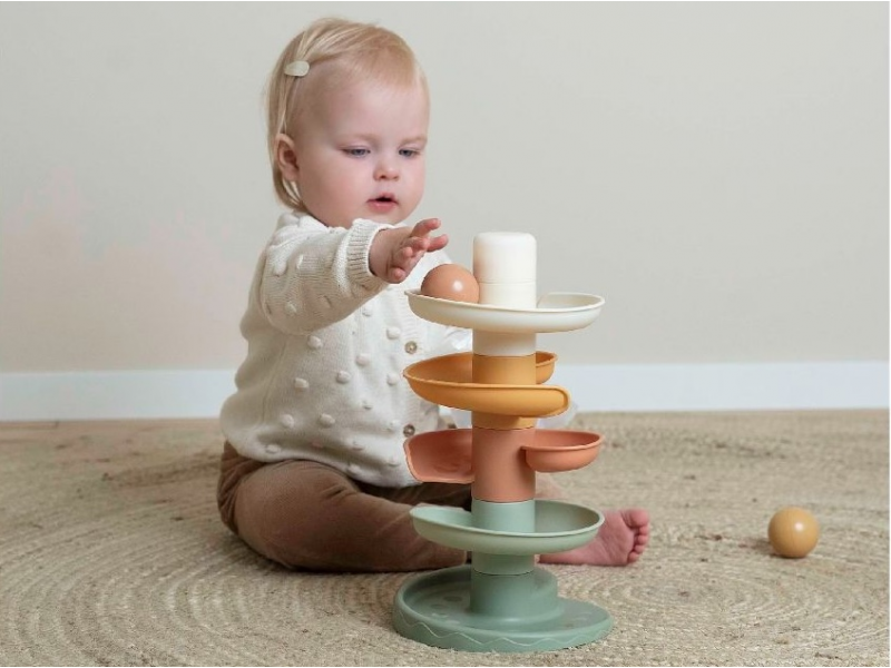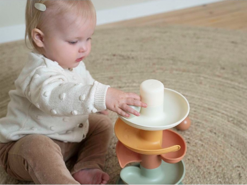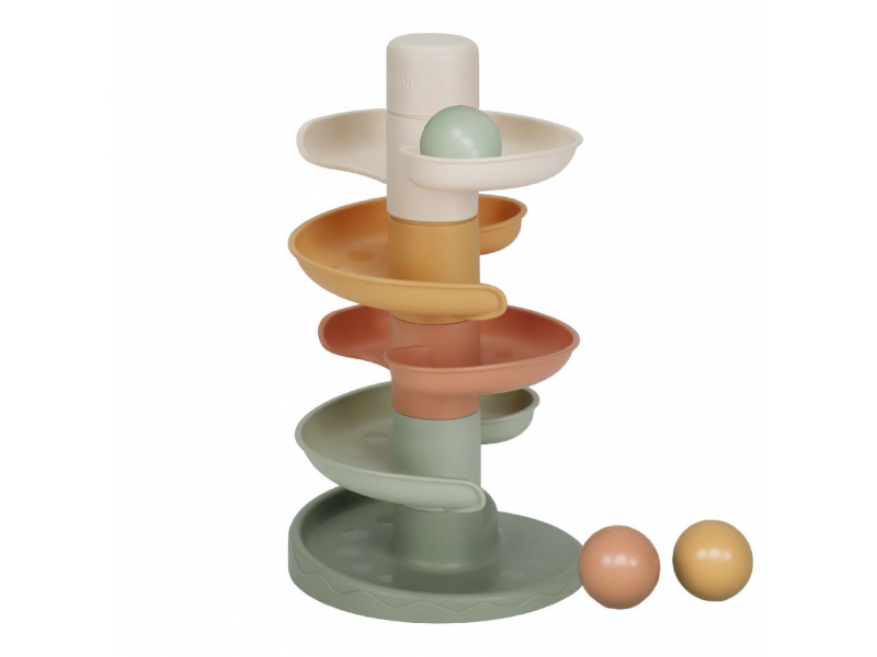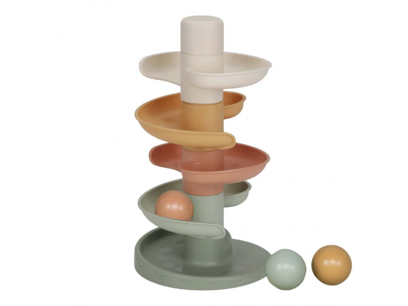 Sledujte s vaším dítětem, jak se míčky kutálí kolem dokola jeden za druhým! Dráhu v jemných pastelových barvách snadno sestavíte z pěti dílů a zábava může začít.