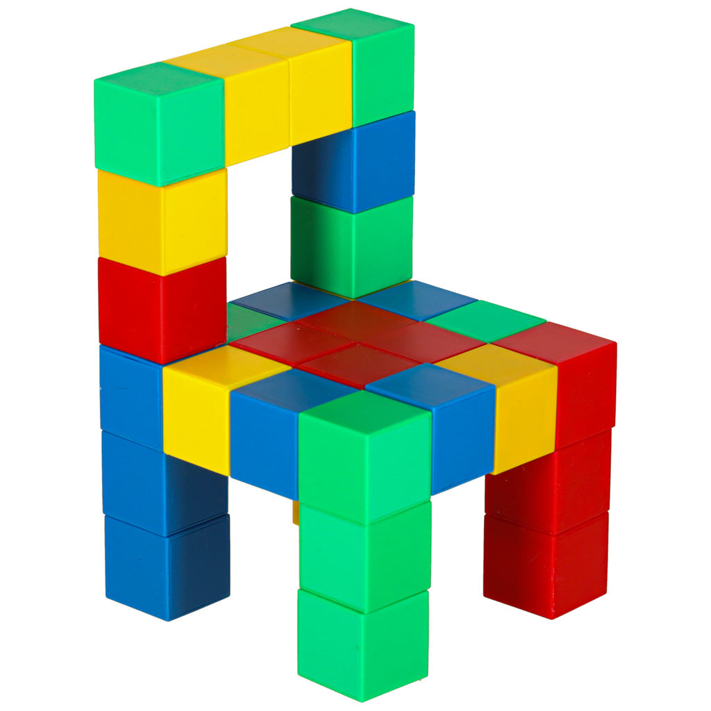 - Podpora kreativity – barevné kostky umožňují tvořit rozmanité stavby, které podporují prostorové vnímání a tvořivé myšlení.