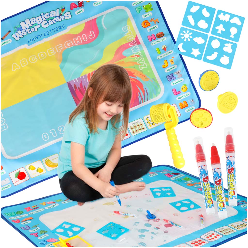 Objevte svět bezbarvého malování! Vodní podložka na malování je ideální hračka pro malé umělce od 3 let, která spojuje zábavu s učením. K malování stačí jen voda – bez barev, bez skvrn, bez starostí. Obrazy zmizí po zaschnutí a podložka je opět připravena k dalšímu použití.