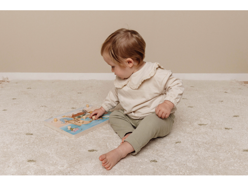 Puzzle hra v dřevěném provedení s krásnými obrázky nabízí 7 různých vkládacích dílů.