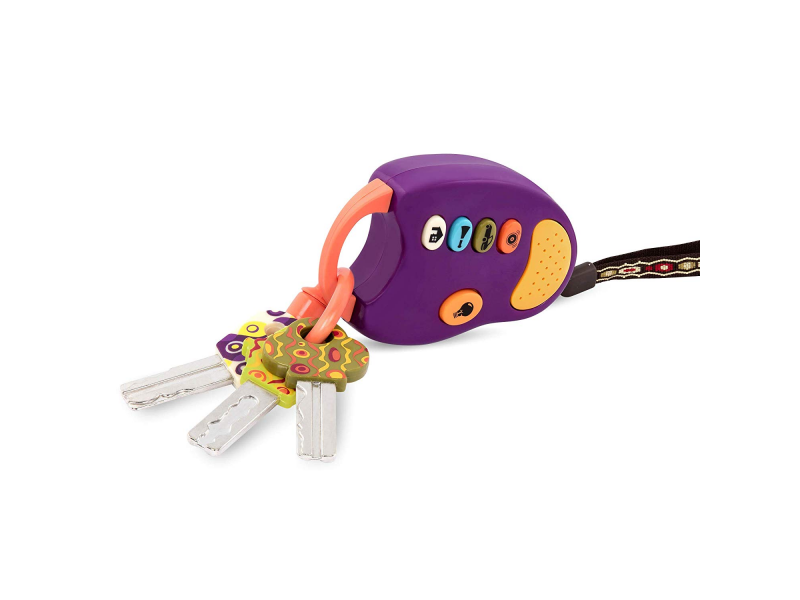 Klíče B.toys jako od opravdového auta se čtyřmi různými zvuky a světýlkem. Odolný materiál bezpečný pro zkoumání rukou i ústy.