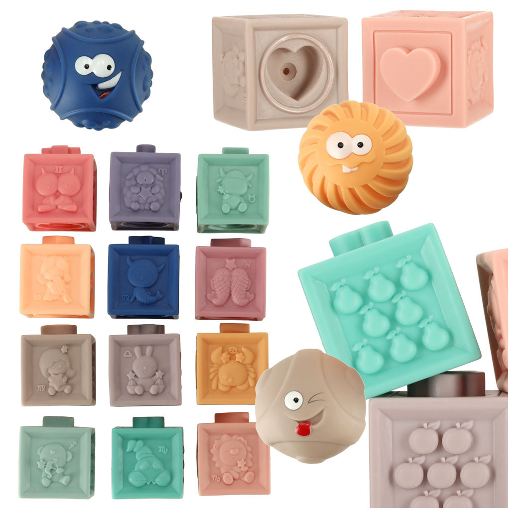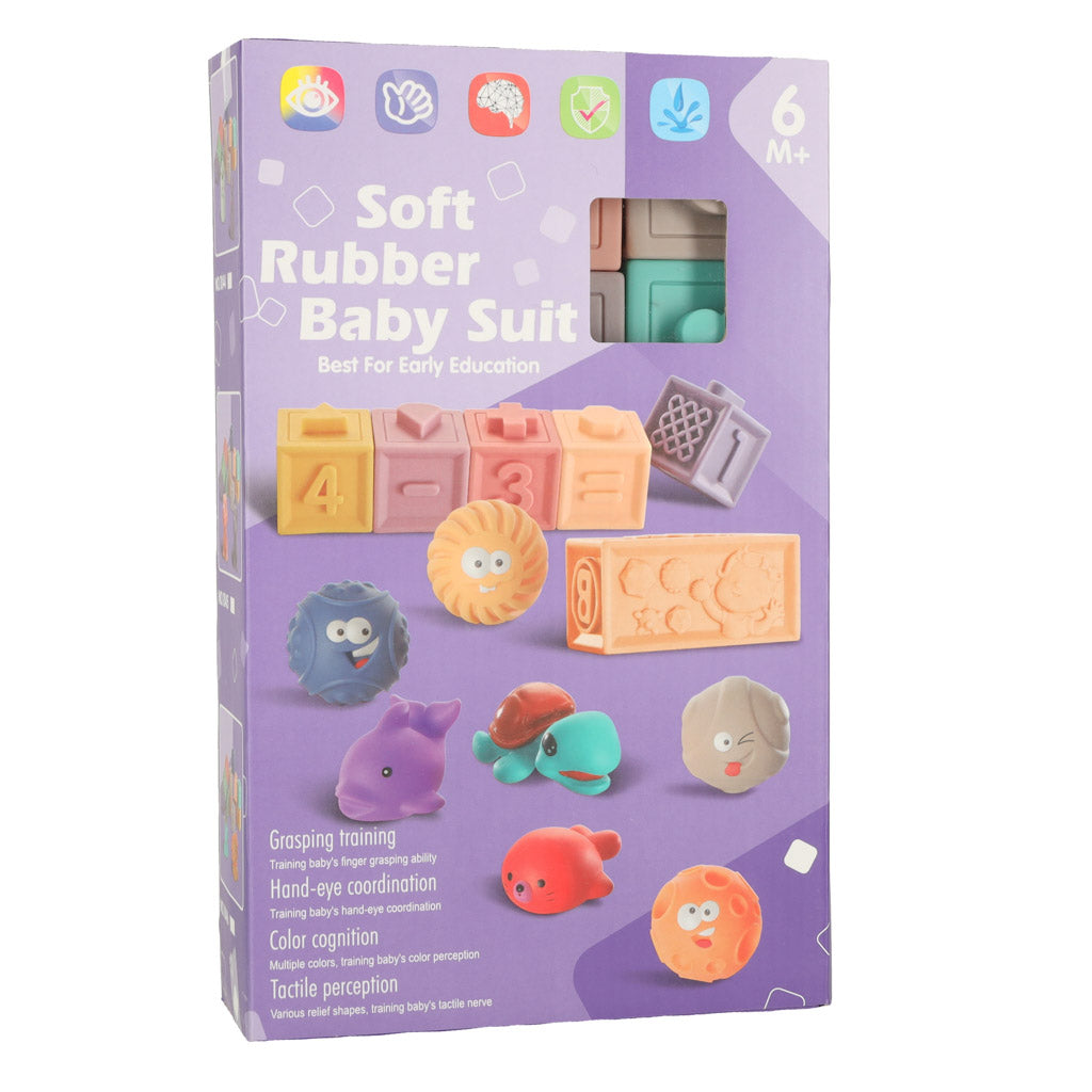 Objevte zábavnou a bezpečnou hračku pro nejmenší – senzorickou sadu kostek a míčků z měkkého silikonu. Díky jemným texturám a różnorodným tvarům sada stimuluje hmatové vjemy dítěte a zároveň rozvíjí jeho logické myšlení a jemnou motoriku.