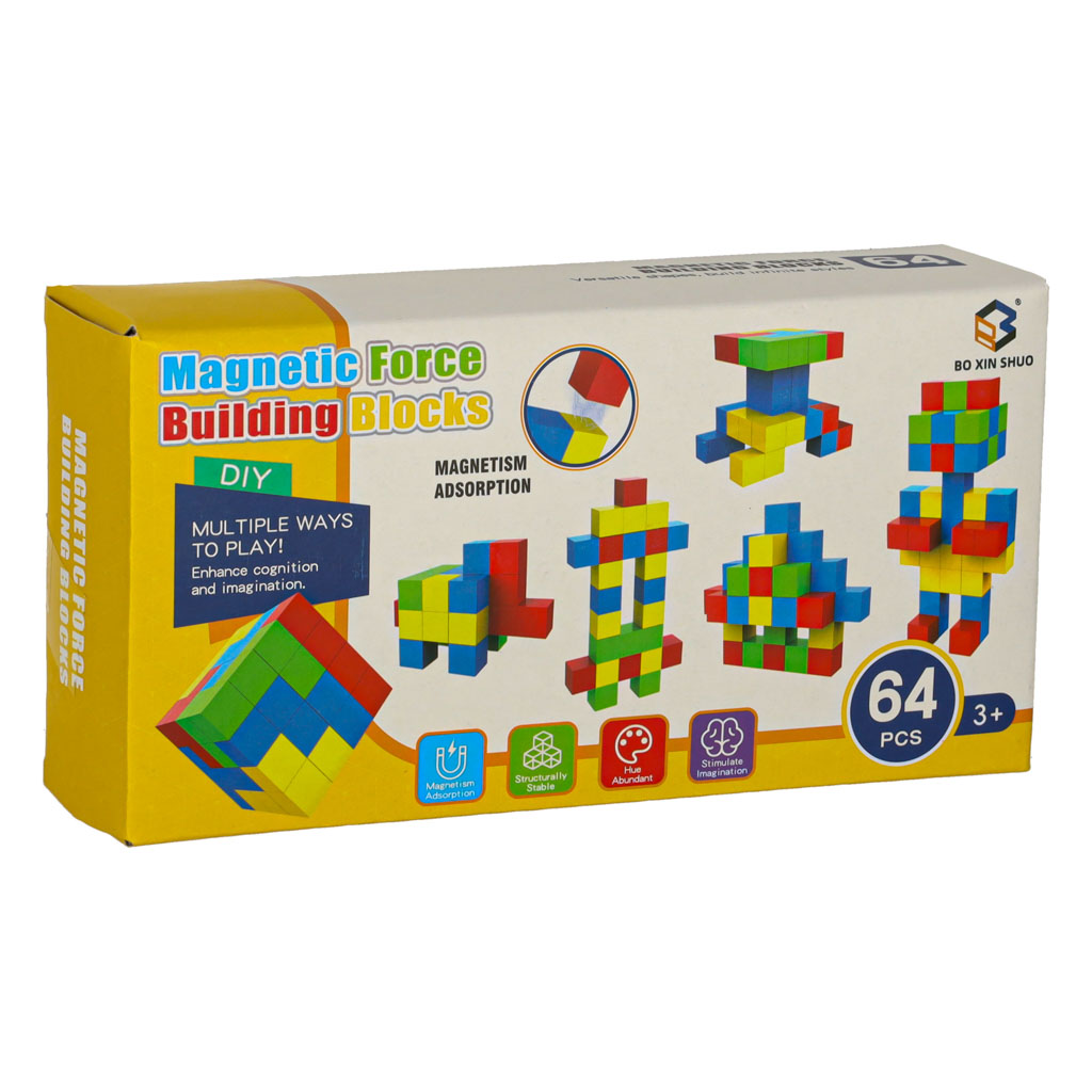 Tato sada obsahuje 64 barevných magnetických kostek, které se jednoduše spojují díky silným magnetům. Díky jednoduchému tvaru – kostky o rozměru 2,5 × 2,5 cm – mohou děti vytvářet různé stavby od jednoduchých věží po propracované geometrické útvary.