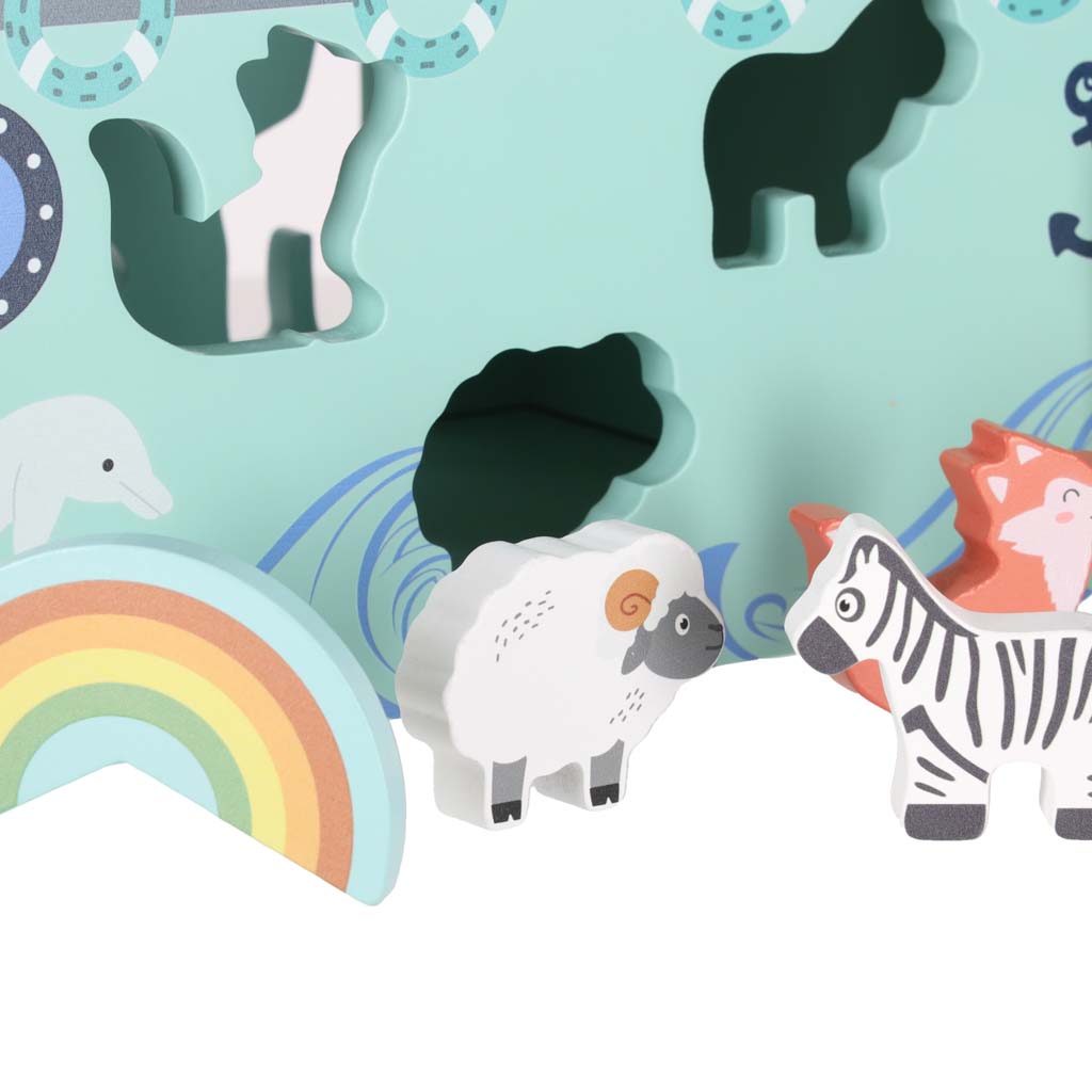 Děti mohou přiřazovat jednotlivá zvířátka do otvorů v lodi, čímž trénují koordinaci oko-ruka a logické myšlení. Každá postavička má svou unikátní podobu a veselý design, který podněcuje zájem a chuť ke hře.