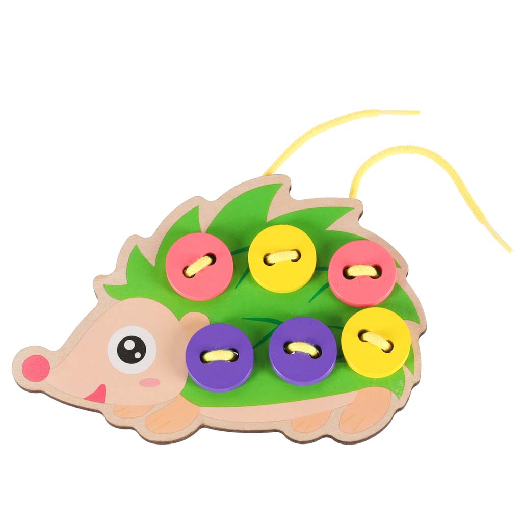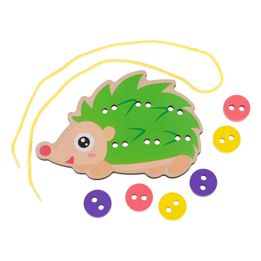 Roztomilý dřevěný ježeček ztratil všechny své knoflíky. Tvým úkolem je je znovu přišít pomocí barevného provázku. Skvělá edukativní hračka, která podpoří rozvoj manuálních dovedností, trpělivosti a logického myšlení u malých dětí.