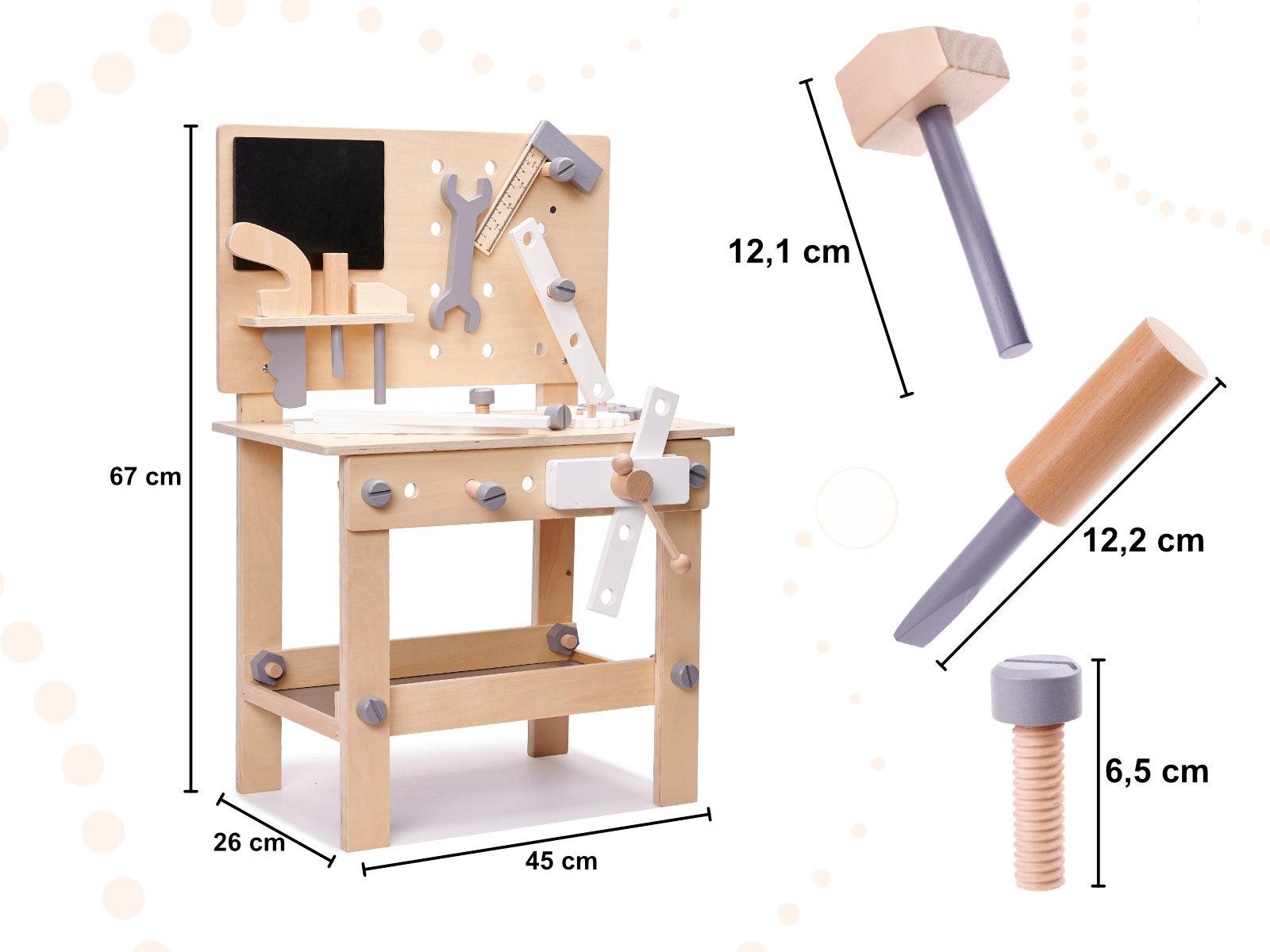Dětský dřevěný dílenský stolek s nářadím - DIY Set